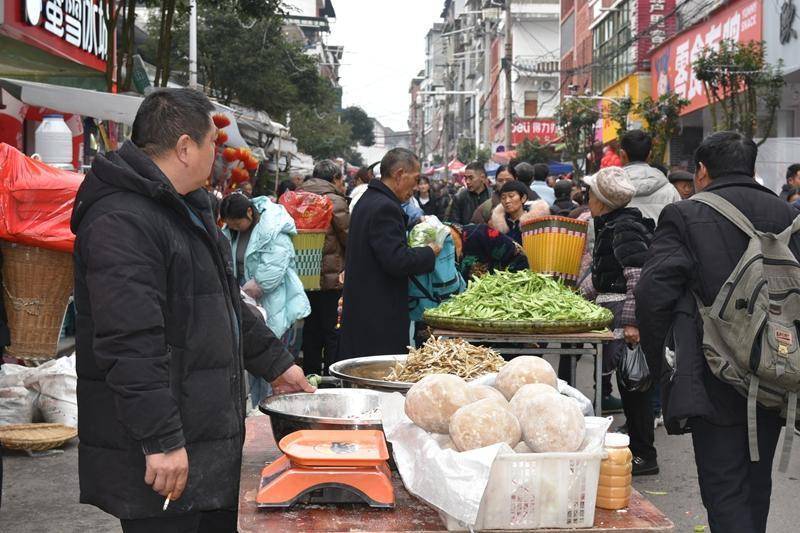 “乘着年底乡场的人气,我就把自己种植的叶子烟、茶叶带到集镇卖,也有300多元的收入。”容光镇元木村群众谢世国边给顾客秤叶子烟边说起年终乡场带来的好处。