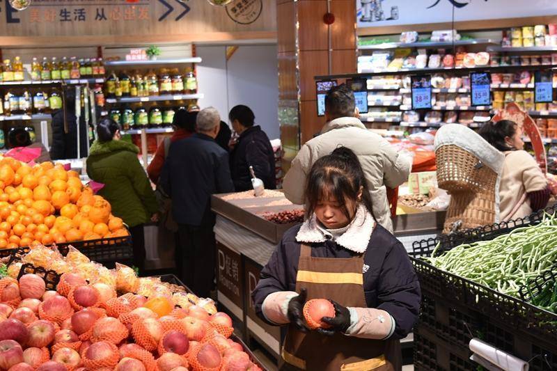 “老板,买2瓶酱油、2瓶香醋、1斤花椒面、1包味精。”新河村群众孙洪军拿着手里的年货单子,在农贸市场食品配料摊购买过年所需要的作料。